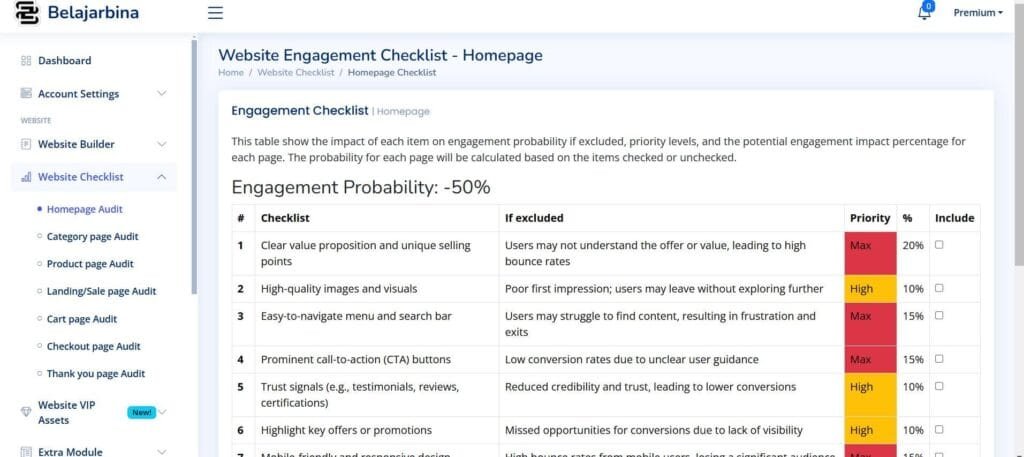 Checklist ini direka khas untuk membantu anda:• Meningkatkan engagement pelawat • Memanjangkan masa lawatan website • Mengoptimumkan elemen conversion • Mengurangkan kadar bounce